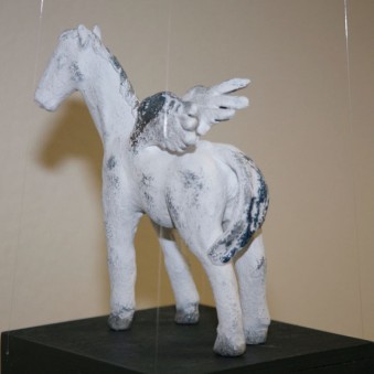 Die Geschichte vom Pegasos und Bellerophon passt in diese Szene. Der antike Held kann mit dem geflügelten Ross einige seiner Probleme lösen, unterliegt aber letztendlich der Selbstüberschätzung. Die Frage der Selbsterkenntnis und der kritischen Reflexion der eigenen Möglichkeiten gehört zu den Archetypen menschlicher Existenz, was wiederum den Kreis zum Ort der Ausstellung schließt. Nicht zuletzt dreht sich das Geschäft von André Haueis auch darum.