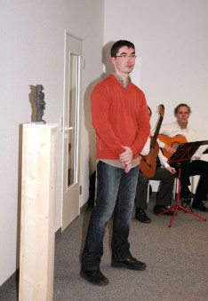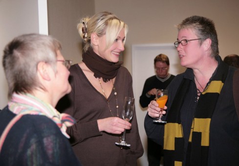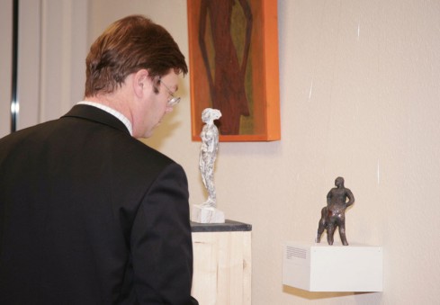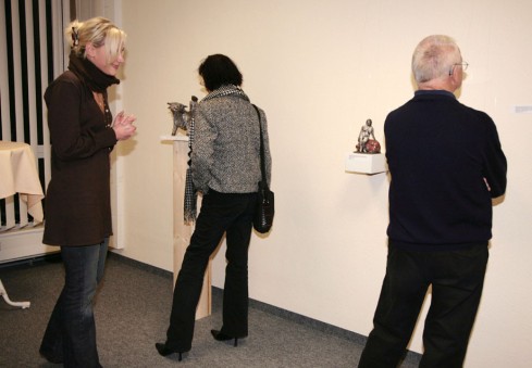 Weil es so gut lief, wurde nochmals eingeladen zu einer Finissage. Bei griechischem Wein wurde philosophiert über die Quellen von Büttners Arbeiten. Die Brücke von der Antike ins Heute zu schlagen ist ja Absicht seiner Bilder und Plastiken. Büttner berichtete ebenso über neues aus dem Atelier. Fernöstliche Design-Philosophie und westliches Recycling sollen eine Rolle spielen. Wie das zusammengeht, beschrieb Büttner eindrucksvoll. Man darf gespannt sein auf zukünftige Arbeiten von ihm.